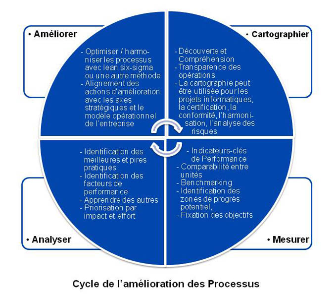 La démarche itérative d'amélioration des processus métier est schématisée ci-dessous: